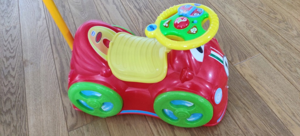 Chicco Jeździdło All Around to jeździdełko w intensywnych kolorach i z ciekawymi nadrukami i naklejkami. To wielofunkcyjna zabawka, która towarzyszy dziecko w rozwoju na różnych jego etapach: gdy dziecko jest małe rodzic, za pomocą sztywnej rączki może jeździdełko pchać. Starsze dzieci siedząc na jeździdełku napędzają je siłą swoich nóg.