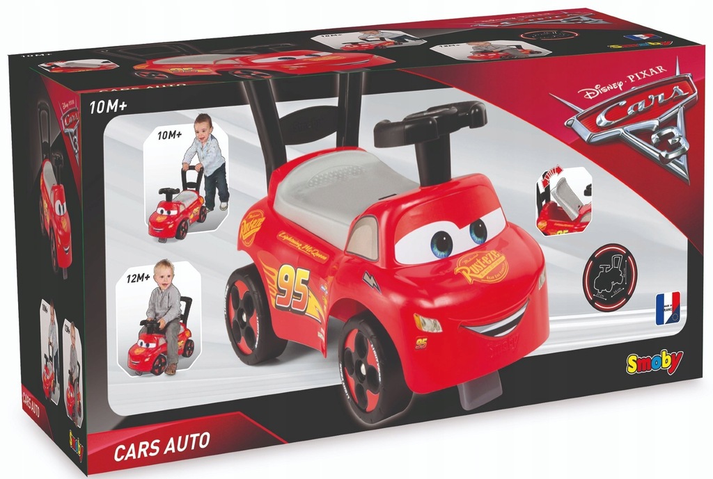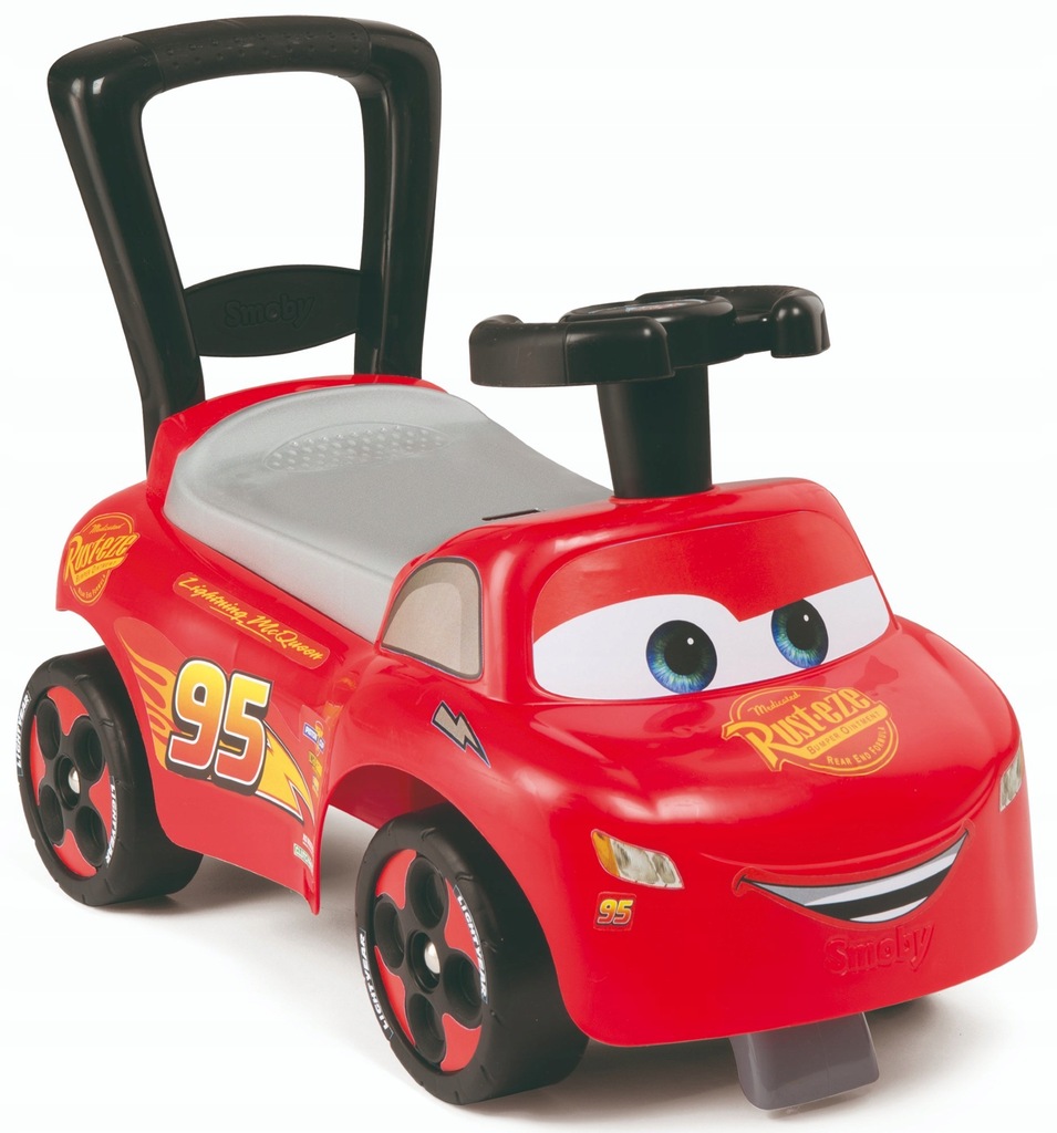 Jest w kolorze czerwonym, a jego kółka są czarne. Posiada szare siedzisko, czarny uchwyt do pchania oraz kierownicę.