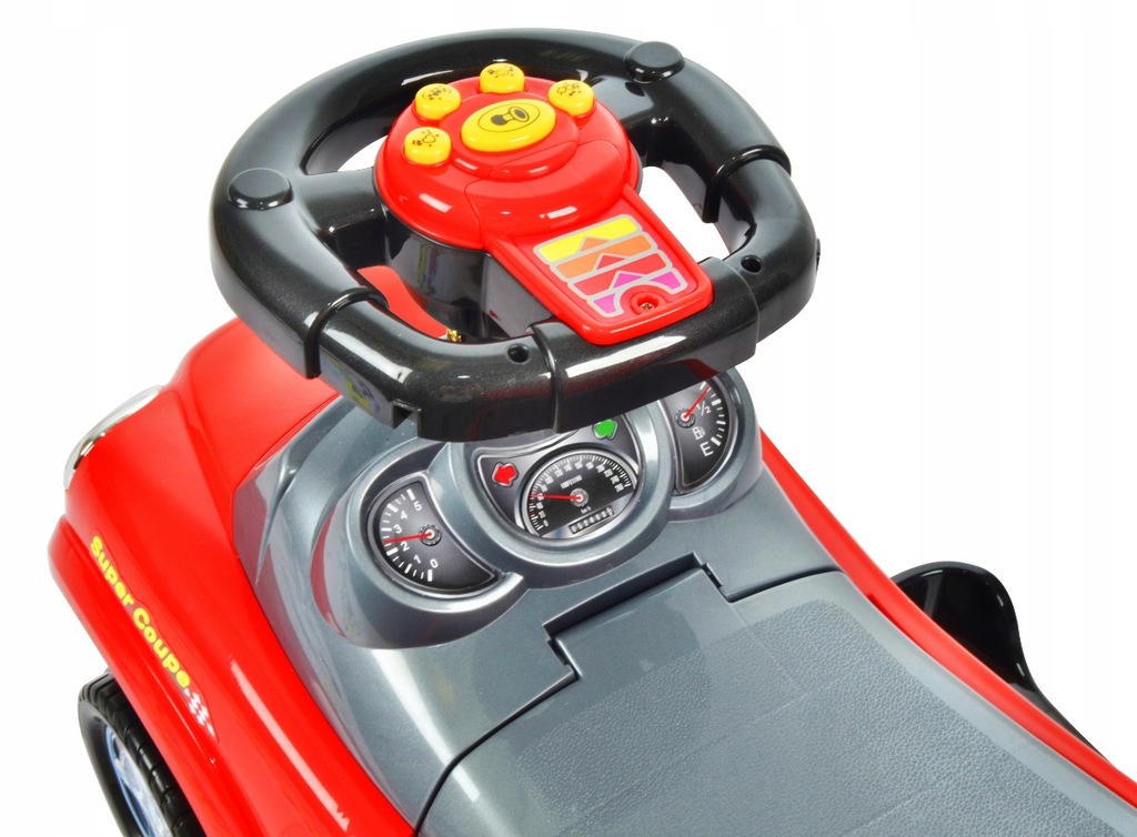 Jeździk do doskonała zabawka, która rozwinie zdolności motoryczne, spostrzegawczość a nawet podstawy bezpiecznego poruszania się poza domem. Autko dzięki swojej multimedialnej kierownicy przyciąga uwagę najmniejszych dzieci.