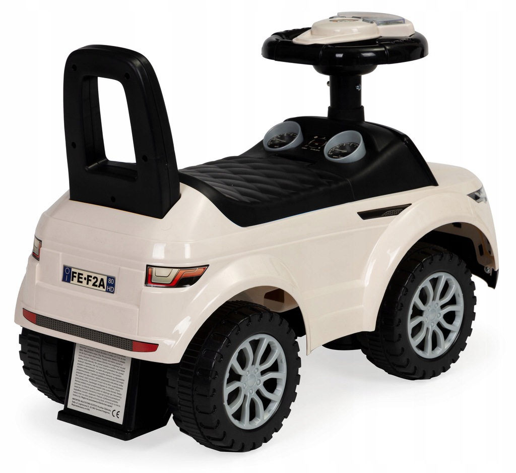 - Między kołami, na przedniej i tylnej osi znajdują się specjalne "stopy" zabezpieczające jeździk. Dzięki nim pojazd nie przewróci się do przodu i tyłu, nawet podczas intensywnej zabawy.