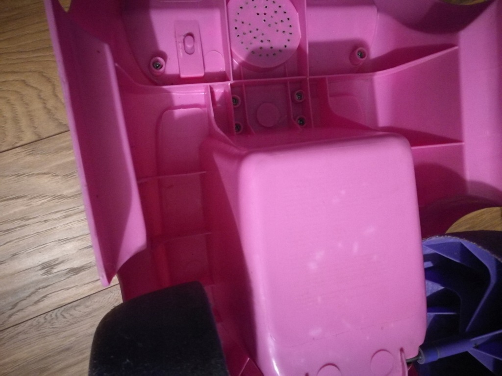 Zabawka jest w stanie dobrym, plastikowe części sa całe, zniszczyły się trochę naklejki np. na telefonie "zrobiliśmy" nowe.
