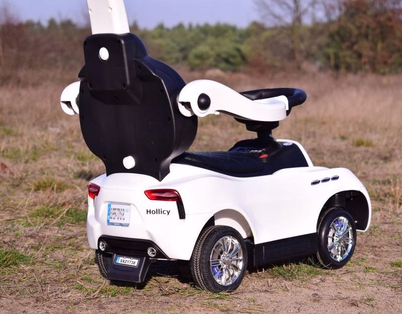 PCHACZ Z RĄCZKĄ - z pojazdem możemy iść na spacer i sterować jazdą dziecka. Skręcając rączką do pchania skęcamy kołami przednimi. Przednie kółka posiadają blokadę, dzięki jej odblokowaniu sterujemy pojazdem z łatwością jak w wózkach dla dzieci. Jeśli chcemy aby pojazd służył nam za jeździk a nie jako pojazd na akumulator - wystarczy przyciągnąć go lekko do tyłko, a następnię do przodu, wówczas zastosowany to nowoczesny silnik ze sprzęgłem odłączy się automatycznie. Specjalne barierki zapobiegające wypadnięciu dziecka. Łatwy demontaż wszystkich elementów sprawia że w każdej chwili możemy zmienić funkcję naszego pojazdu czy też pozdbyć się zbędnego elementu. Dodatkową atrakcją pojazdy są wysuwane i składane podnóżki, które w zależności od używanej funkcjonalności pojazdu mogą być schowane lub wysunięte.