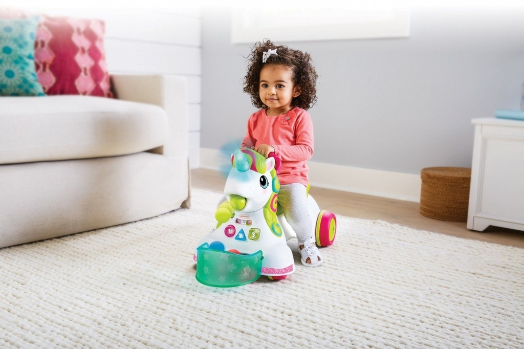 - Jeździk jednorożec to ponad 20 efektów dźwiękowych i świetlnych.