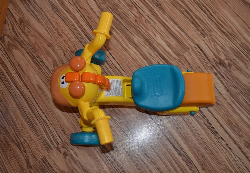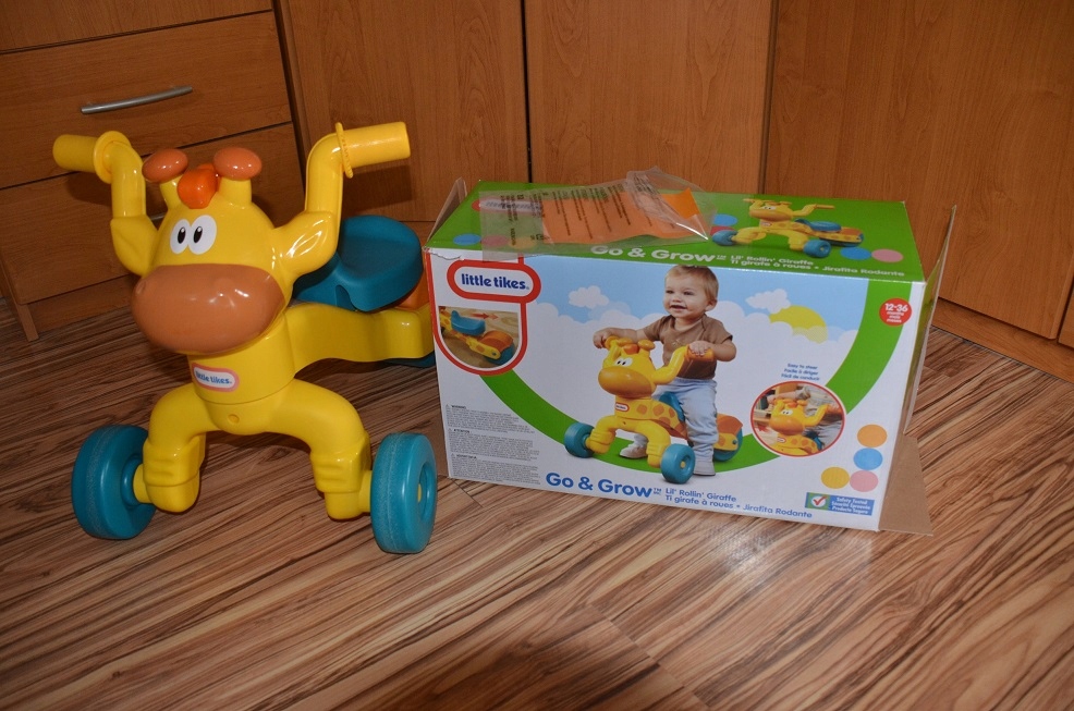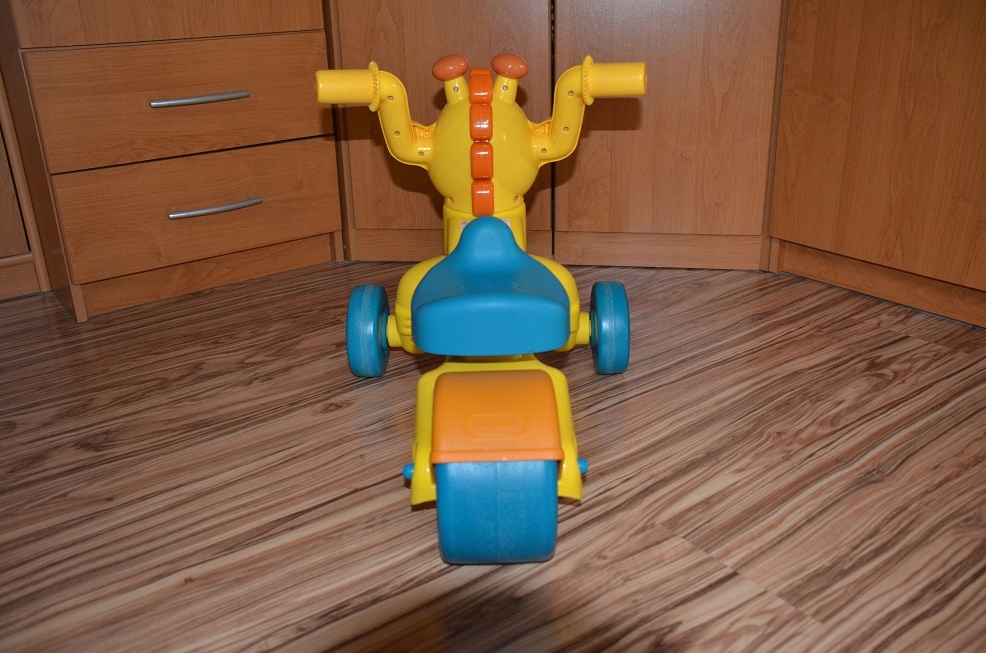 Sprzedam jeździk Żyrafa firmy Little Tikes. Jeździk używany w dobrym stanie - ślady normalnego użytkowania na kołach. Używany tylko w domu. Załączam oryginalne opakowanie dokumentację i komplet naklejek - plam , które nie były jeszcze naklejane. Kolor kół i siedzenia zielony - od lampy błyskowej wyszły niebieskie.