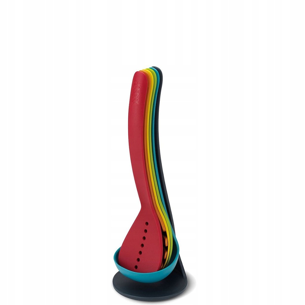 Doskonale wygląda na kuchennym blacie, przyciąga uwagę, ale przede wszystkim jest bardzo funkcjonale. Nie potrzebny będzie pojemnik na łyżki, czy szuflada pełna narzędzi kuchennych. Zajmuje minimum miejsca. Każda łyżka posiada magnes w uchwycie, dzięki czemu utrzymują się razem, dla ułatwienia w układaniu łyżki są ponumerowane.