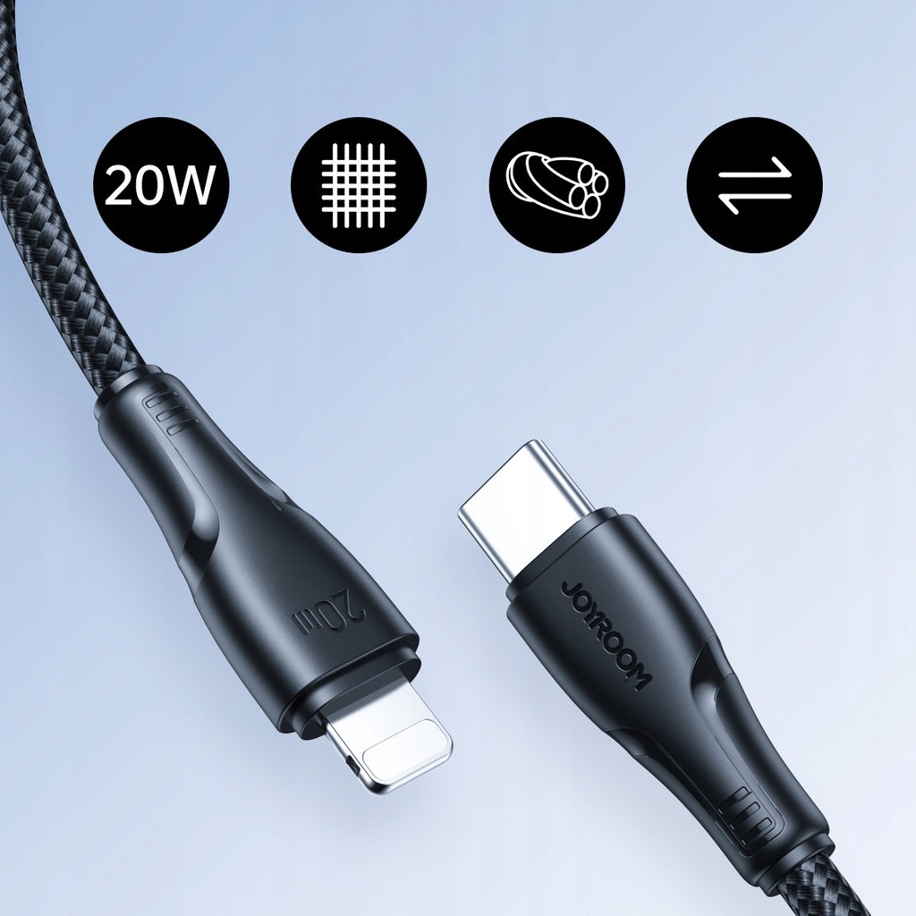 Kabel USB C - Lightning o mocy do 20 W do szybkiego ładowania i transferu danych, o długości 1,2 m, z serii Surpass Series – Joyroom S-CL020A11 (czarny)