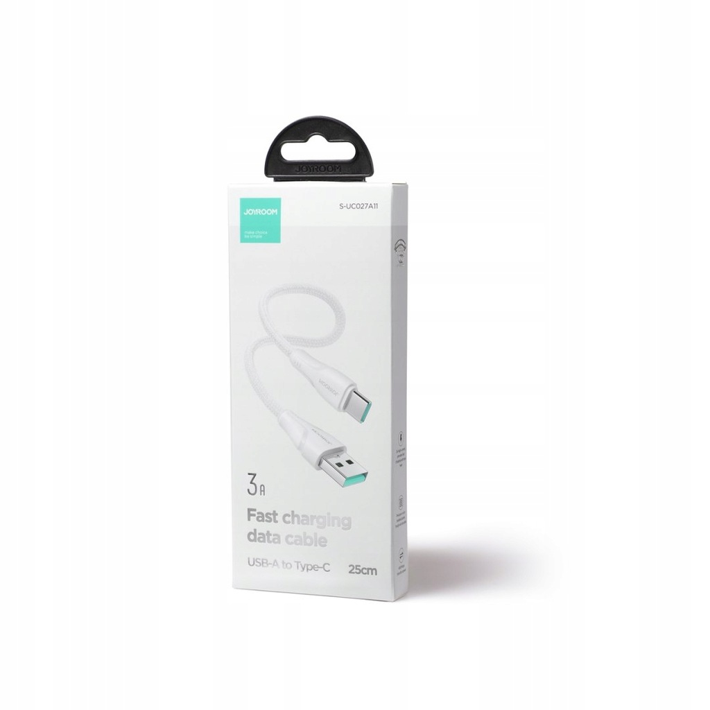 Kabel USB – USB C o natężeniu 3 A do szybkiego ładowania i transferu danych, o długości 0,25 m z serii Surpass Series – Joyroom S-UC027A11 (biały)