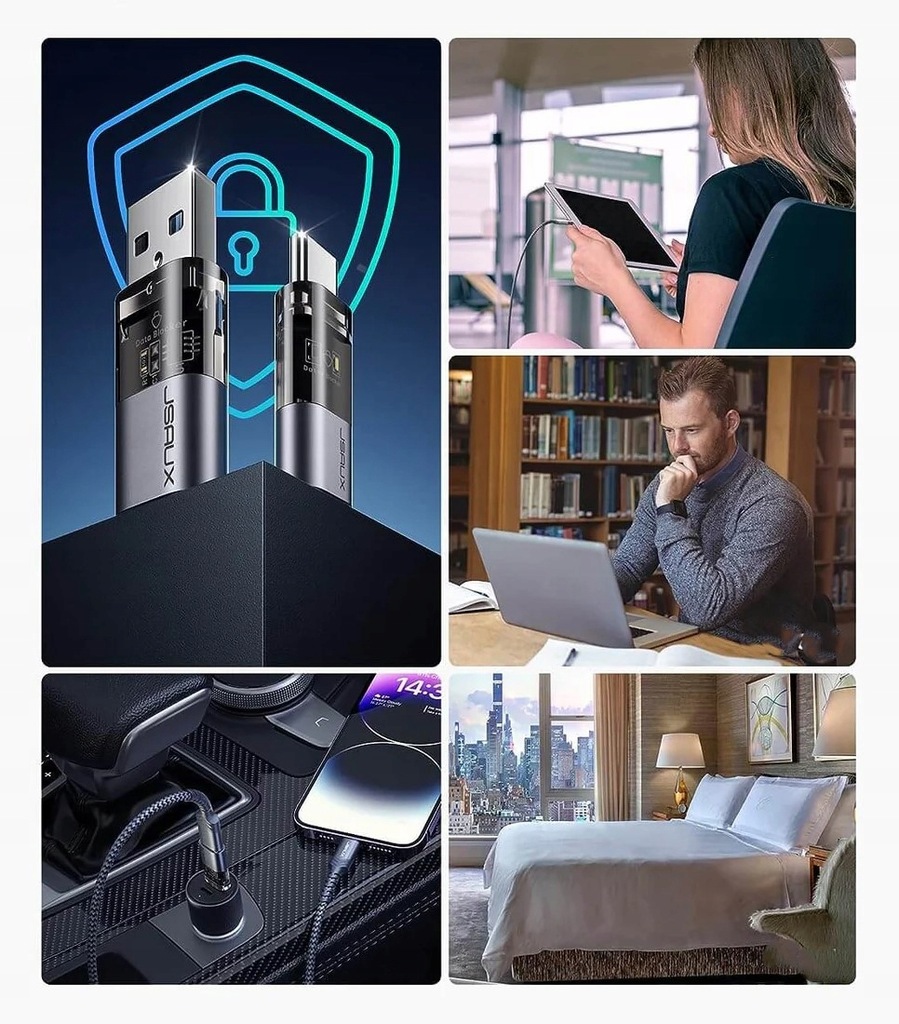✅ Główną funkcją Jsaux USB Data Blocker jest eliminacja ryzyka przechwycenia danych podczas korzystania z publicznych ładowarek USB. Często ładowarki te mogą być potencjalnym źródłem ataków cybernetycznych, które mają na celu kradzież poufnych informacji. Dzięki Jsaux USB Data Blocker możesz ładować swoje urządzenia bez obaw o bezpieczeństwo swoich danych.