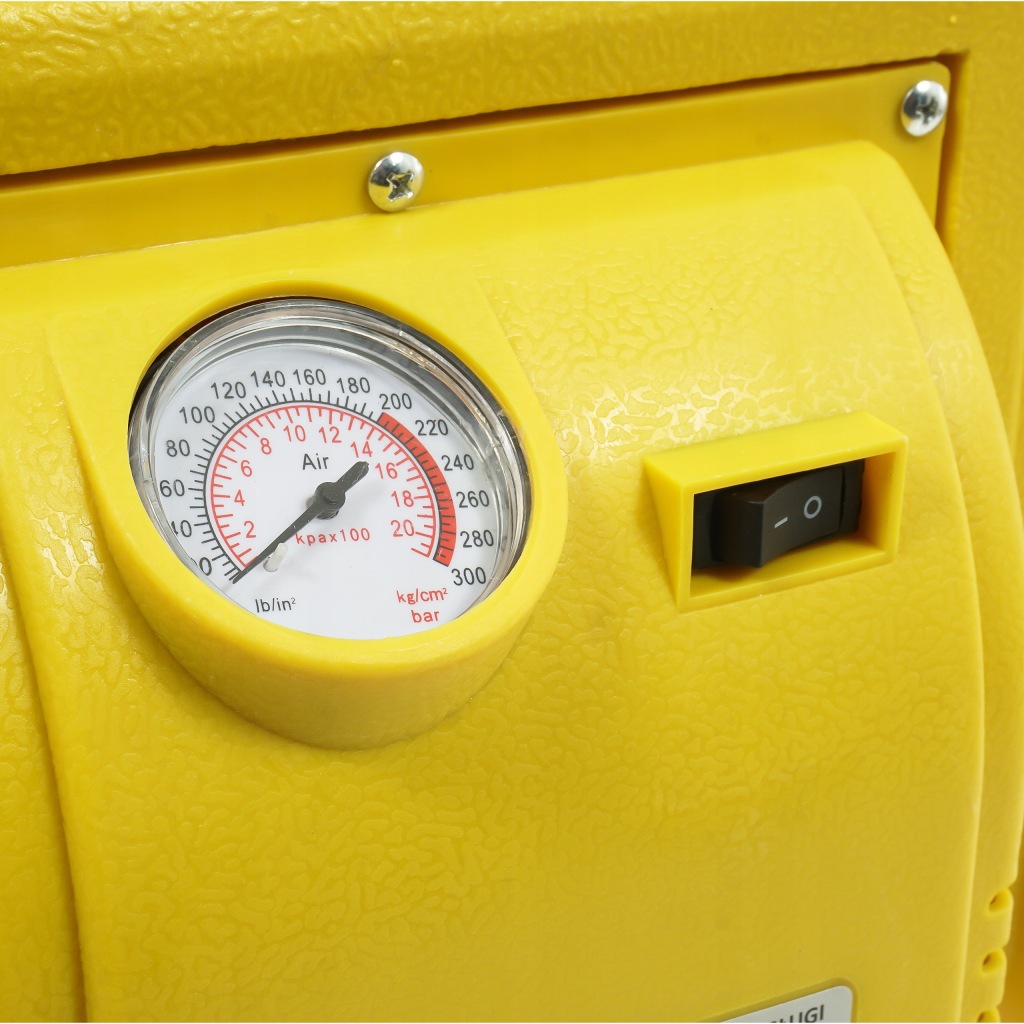 - KOMPRESOR – narzędzie ma wbudowaną sprężarkę powietrza z manometrem. Posiada wąż z zakończeniem na wentyl samochodowy oraz 3 końcówki z do pompowania różnych akcesoriów jak piłki, materace itp. Ciśnienie kompresora to 20 bar / 300 PSI.