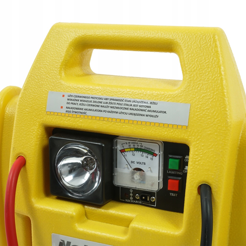 Urządzenie posiada woltomierz, opcja ta daje nam sprawdzenie poprzez czerwony przycisk TEST naładowanie akumulatora wbudowanego w urządzeniu, a także po podłączeniu klem do akumulatora w naszym aucie.
