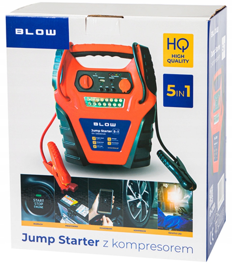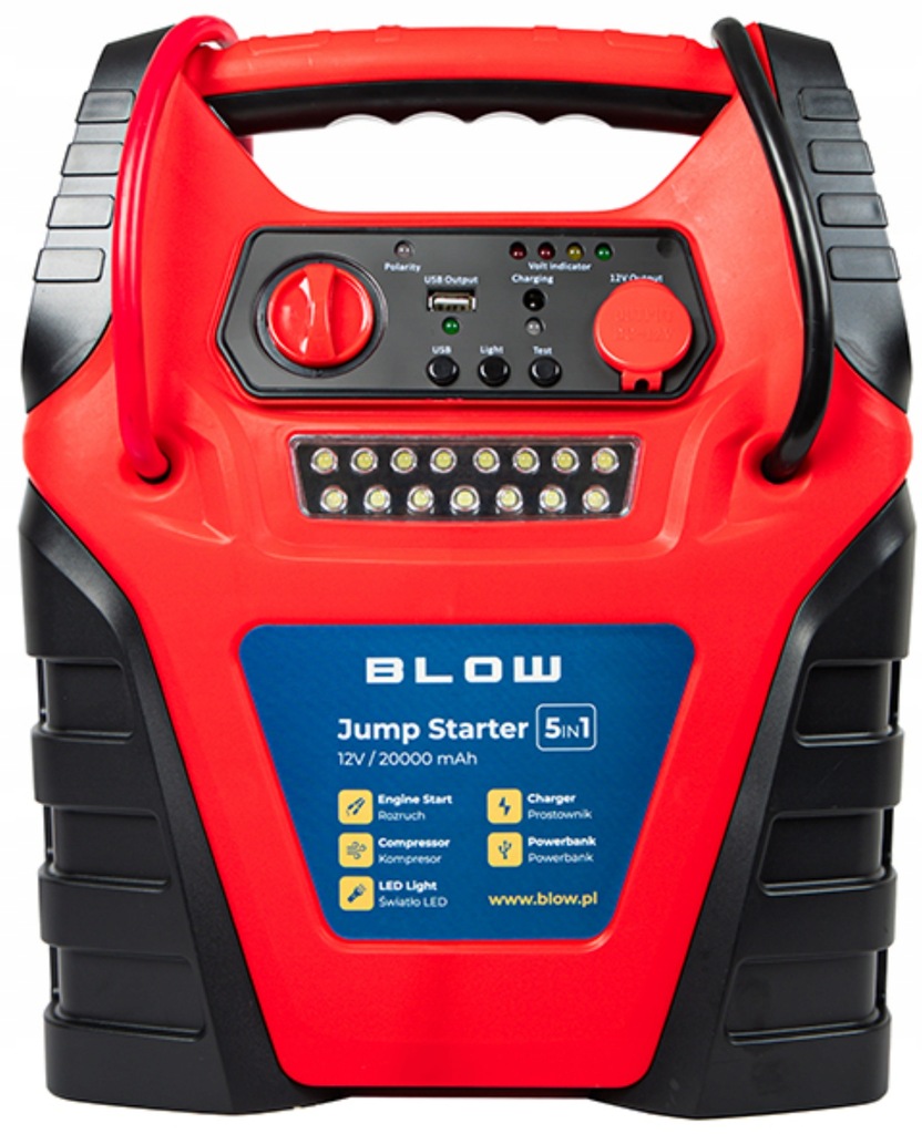 - Rozruch - umożliwia natychmiastowe uruchomienie pojazdu. Wystarczy podłączyć urządzenie do akumulatora i obrócić kluczyk.