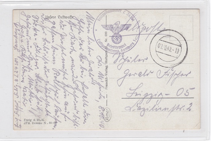 Nr. poczty polowej na stemplu Luftwaffe ( L. 24201 - batalion budowlany Luftwaffe )