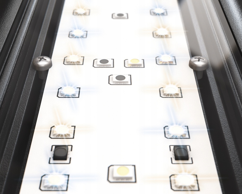 HeliaLux Spectrum to wysoce wydajny moduł oświetleniowy LED o pełnym spektrum światła. Najnowocześniejsze, specjalnie opracowane diody LED-SMD gwarantują maksymalną wydajność świetlną dla optymalnego wzrostu roślin - białe diody LED doskonale oświetlają akwarium, podczas gdy czerwone, niebieskie i zielone diody LED tworzą intensywne kolory i maksymalny kontrast w podwodnym świecie. Idealnie skoordynowana gama kolorów wspomaga witalność ryb i zapewnia optymalny wzrost roślin.