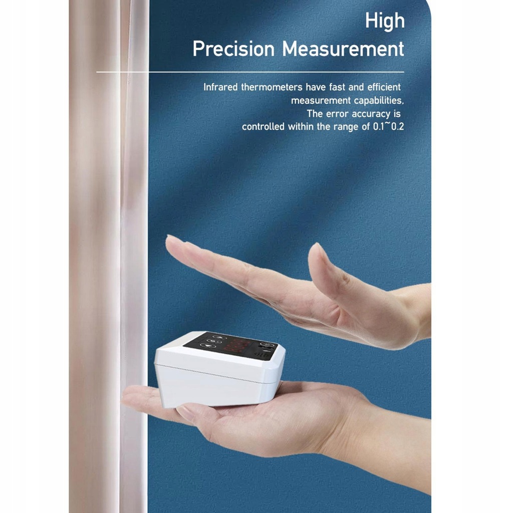 Portable Infrared thermometer, Small and sensitive design, Convenient to carry with you, Alarm Function, When the temperature is higher than the set temperature, the display shows "HI" and a high temperature abnormal voice alarm will be issued.