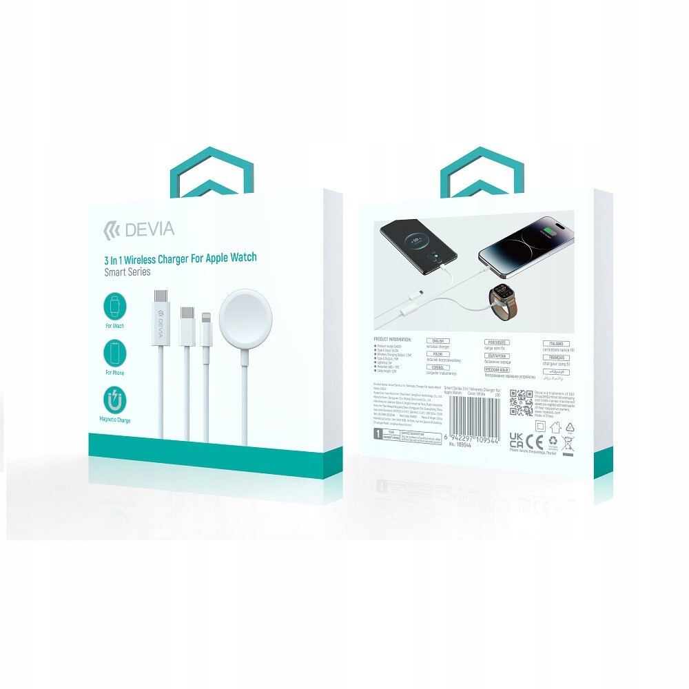 CECHY PRODUKTU Devia kabel 3w1 Smart EA520 USB-C - USB-C + Lightning biały z ładowarką indukcyjną magnetyczną do Apple Watch