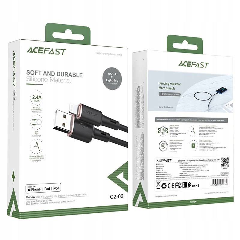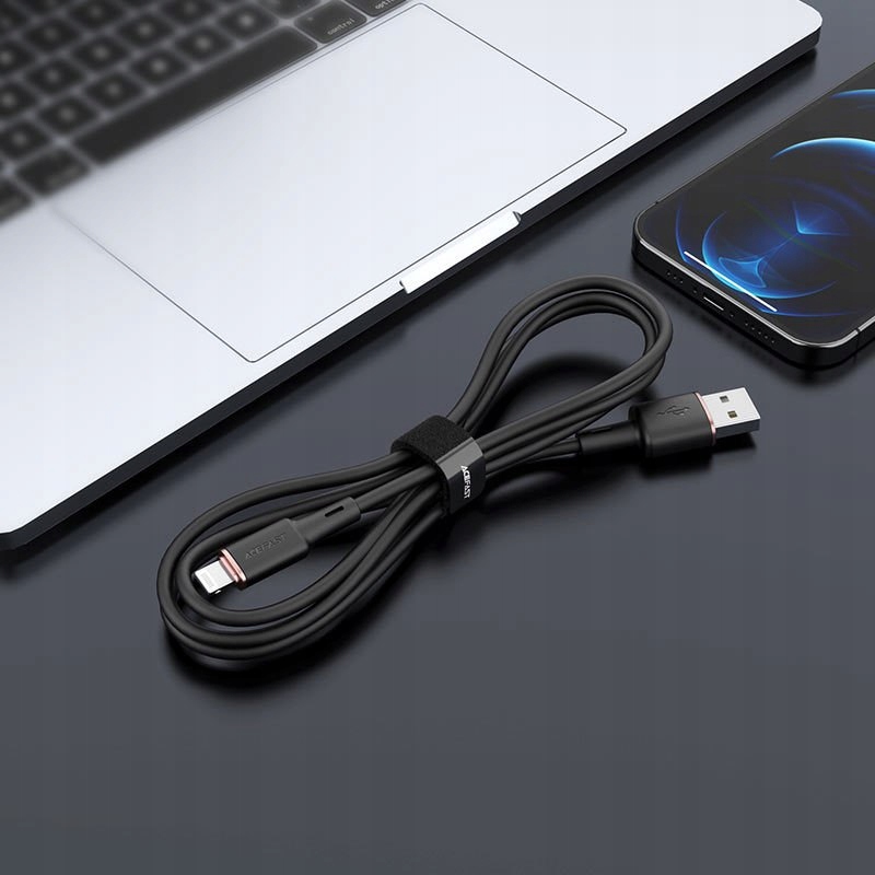Kabel MFI USB - Apple Lightning 3A 1,2m Szybkie Ładowanie i Przesyłanie Danych Acefast Zinc Alloy Silicone Charging Data Cable (C2-02) czarny