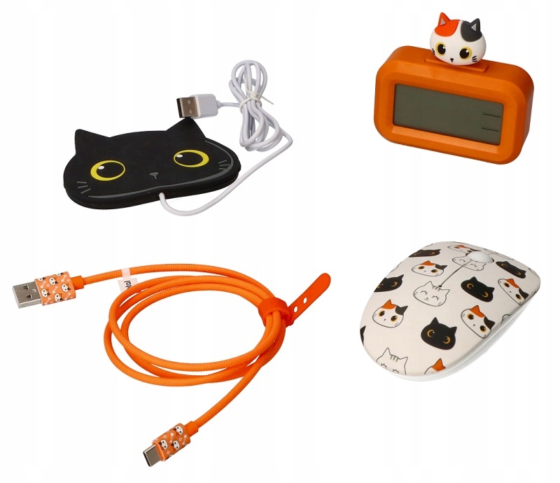 Kabel do ładowarki USB-C z pomarańczowym kotem