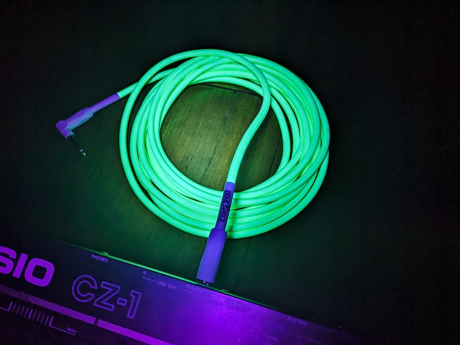 Kabel instrumentalny, który świeci w ciemności.