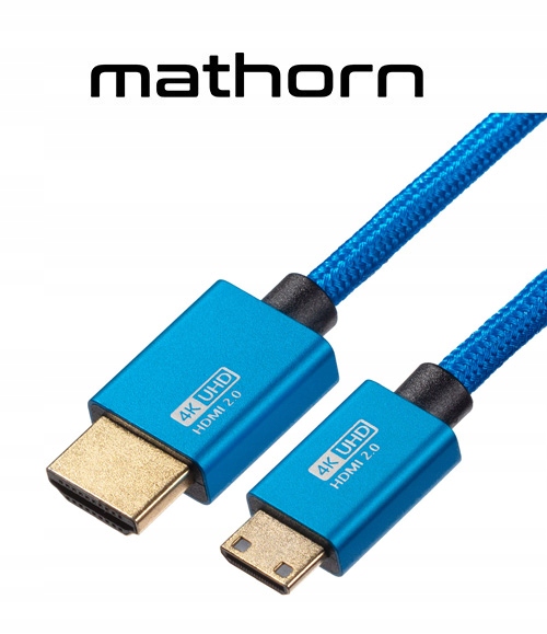 Mathorn MVC-40AC to wysokiej klasy kabel HDMI o długości 40 centymetrów przeznaczony do nagrywania i transmisji strumieniowej w standardzie UltraHD. Z jednej strony zakończony jest standardowym złączem HDMI typu A, a z drugiej HDMI Mini typu C. Kabel zapewnia kompatybilność ze standardem HDMI 2.0 i obsługuje przepustowość danych do 18 Gbit/s oraz przesył obrazu HDR w rozdzielczości do 4K/60Hz. W pełni ekranowane przewody kabla chronione są otuliną wykonaną z PVC oraz dodatkowo wzmocnione nylonową plecionką w charakterystycznym dla marki Mathorn kolorze ArcticBlue. Wysoką odporność mechaniczną kabla zapewniają również dwukomponentowe obudowy złącz HDMI, które wykonane zostały z tworzywa PVC wzmocnionego aluminiowym ekranowaniem w kolorze poszycia kabla.