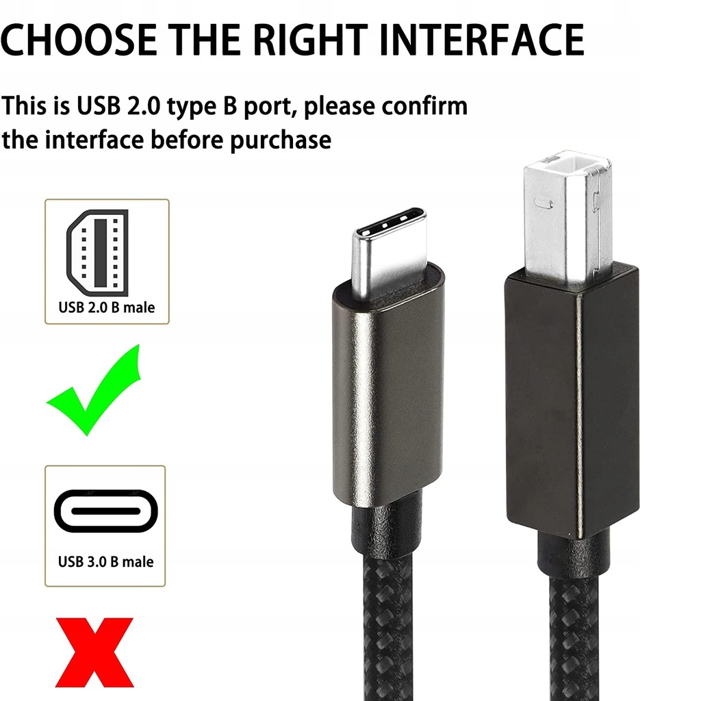 Ten kabel USB typu C do USB typu B obsługuje szybki transfer/synchronizację danych do 480 Mbps, szybszy i bezpieczniejszy niż połączenie przez Wi-Fi. (Uwaga: Jest to kabel USB2.0 C do B, potwierdź, że urządzenie zawiera żeński port USB 2.0 Type-B NIE standardowy port USB, USB 3.1 Type B lub Mini-USB.)