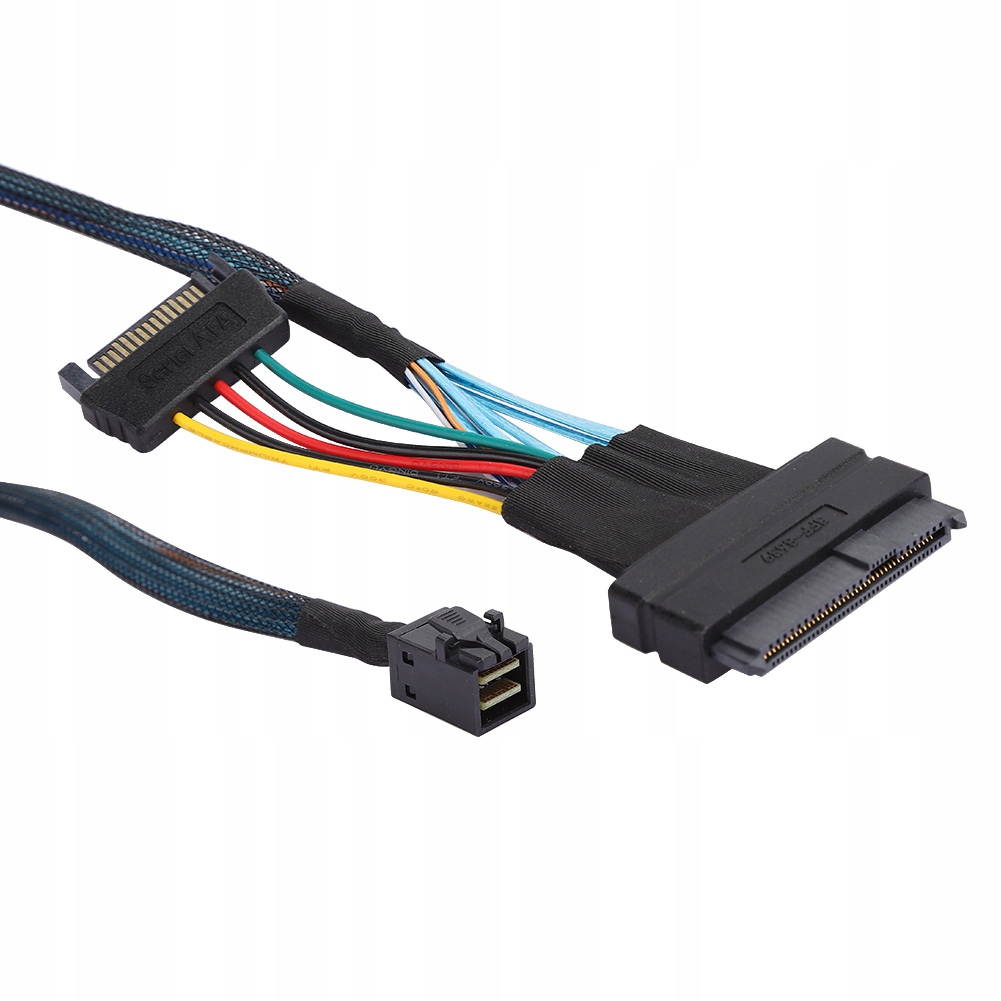 1. Kabel 12 GB/s Mini SAS HD 4i (SFF‑8643) do wtyku U.2 (SFF‑8639 15P) z zasilaczem SATA.