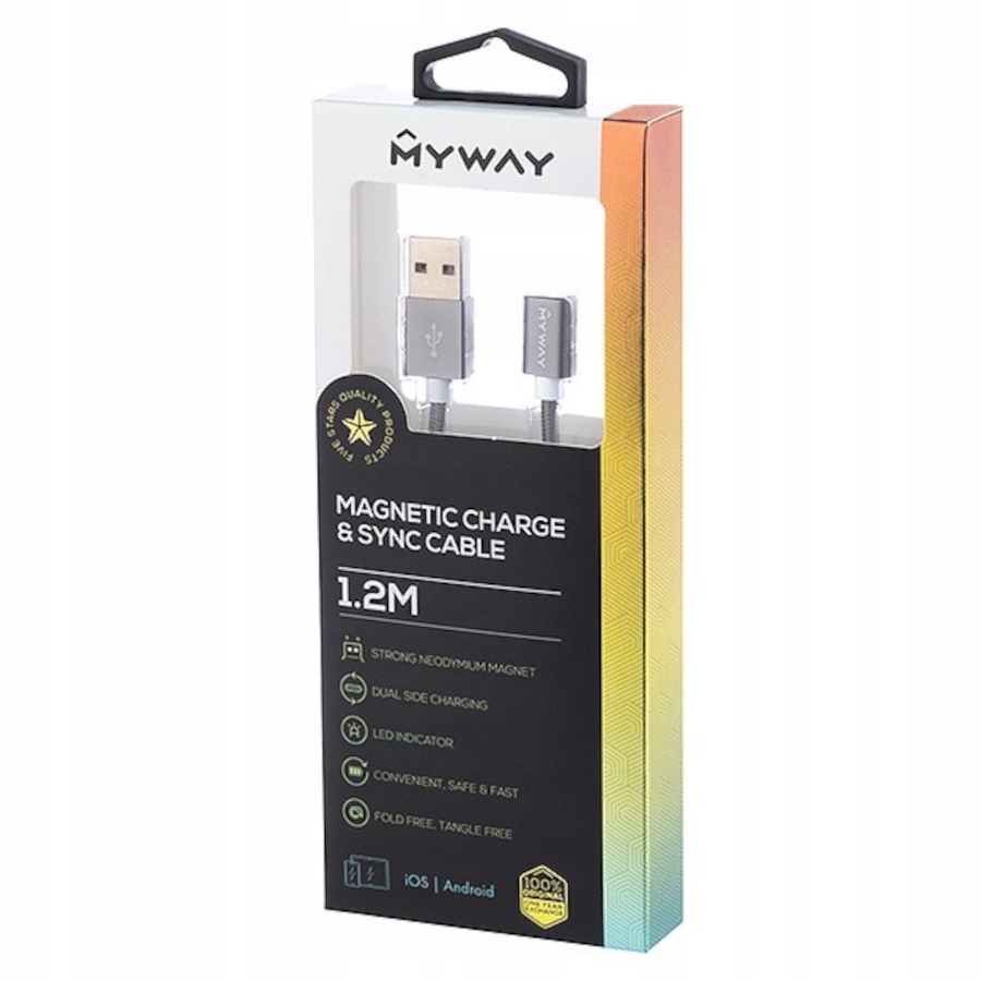 Kabel do ładowania i synchronizacji MYWAY oplot z mikrofibry 120cm USB - magnes neodymowy