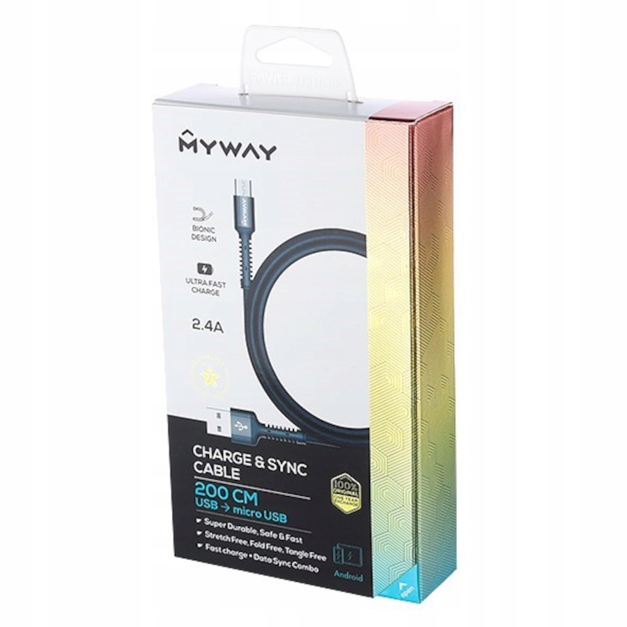 Kabel do ładowania i synchronizacji MYWAY oplot z mikrofibry 200cm USB - micro USB