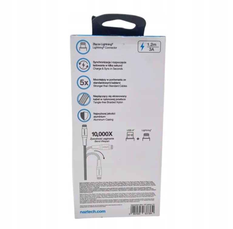 - KABEL NAZTECH USB-A - LIGHTNING 1,2 M CZARNY - pełny komplet producenta