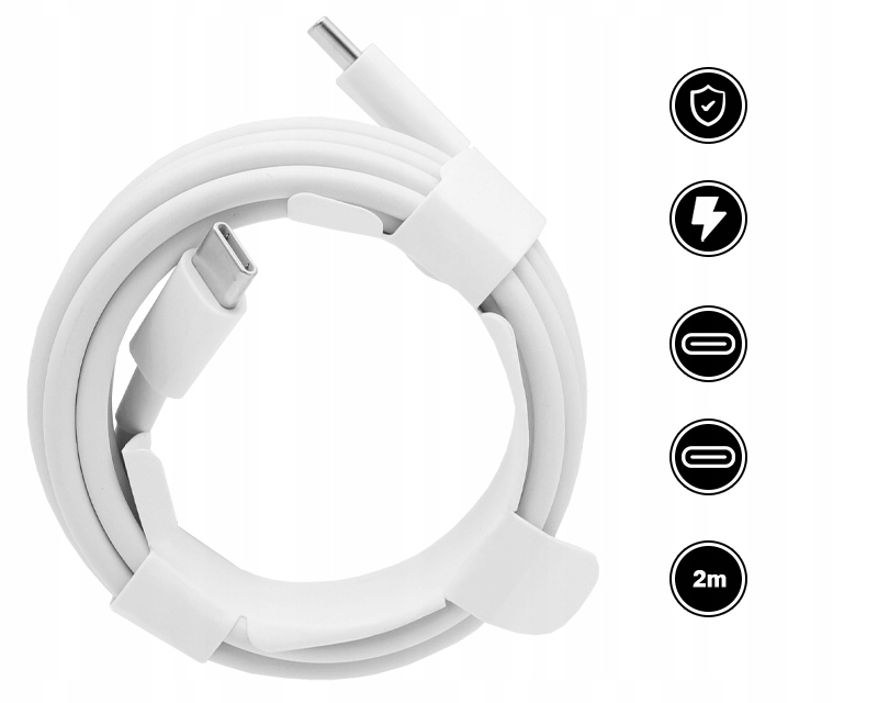 Oryginalny kabel ładujący i synchronizujący dane marki Apple z końcówkami USB-C do USB-C o długości 2m. Cechuje się on najwyższą jakością wykonania. Można go używać zarówno do ładowania jak i jako kabel łączący dowolne urządzenie wyposażone w wyjście USB C z komputerem.