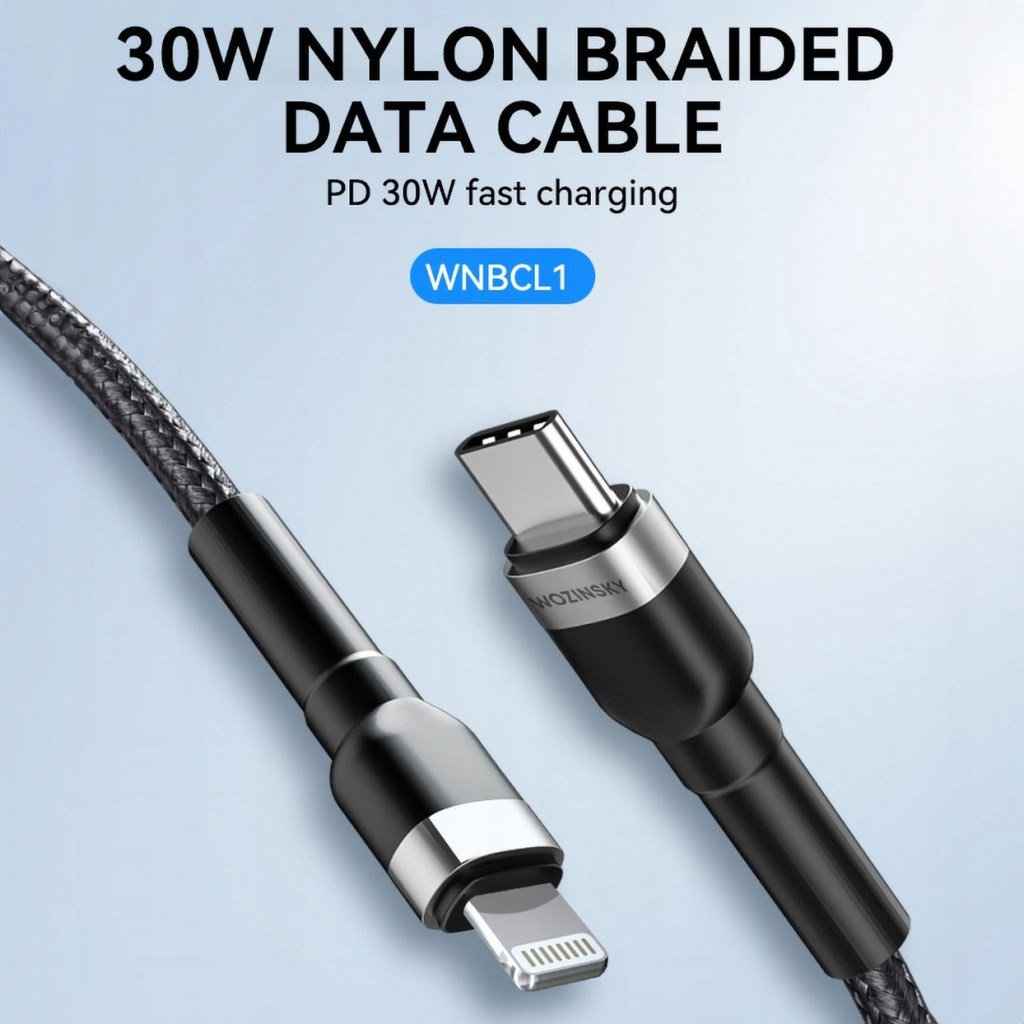 Kabel Wozinsky WNBCL1 zapewnia błyskawiczne ładowanie urządzeń Apple dzięki technologii USB-C do Lightning z funkcją Power Delivery 30W. Zaprojektowany, aby wytrzymać intensywne użytkowanie: jego nylonowa powłoka jest do 10 razy trwalsza niż standardowe kable. Niezawodność w każdych warunkach, wysoka jakość transmisji danych oraz mocne, wytrzymałe złącza czynią ten kabel niezastąpionym akcesorium dla każdego użytkownika urządzeń Apple.