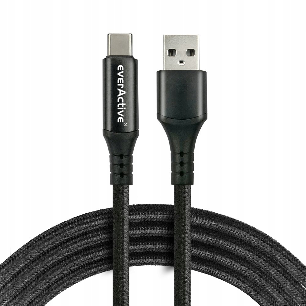 CECHY PRODUKTU Kabel przewód pleciony USB - USB-C / Typ-C LCD everActive CBB-2CBL 200cm z obsługą szybkiego ładowania do 3A czarny
