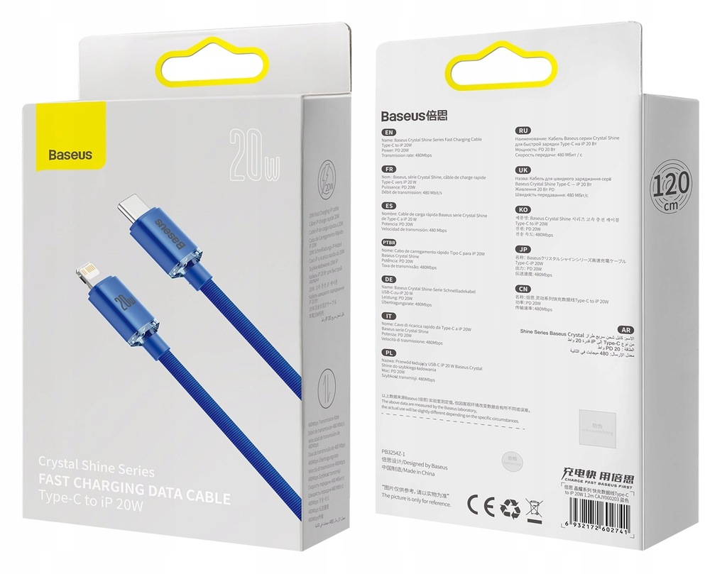 - Model: Crystal Shine Series Fast Charging Data Cable Type-C to iP 20W 1.2m Blue