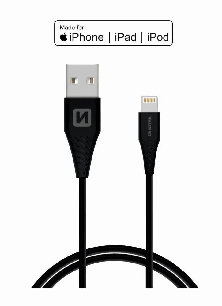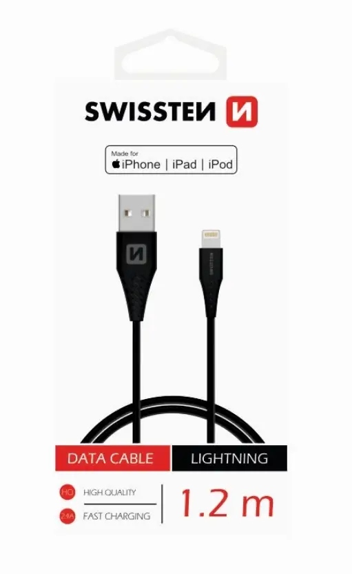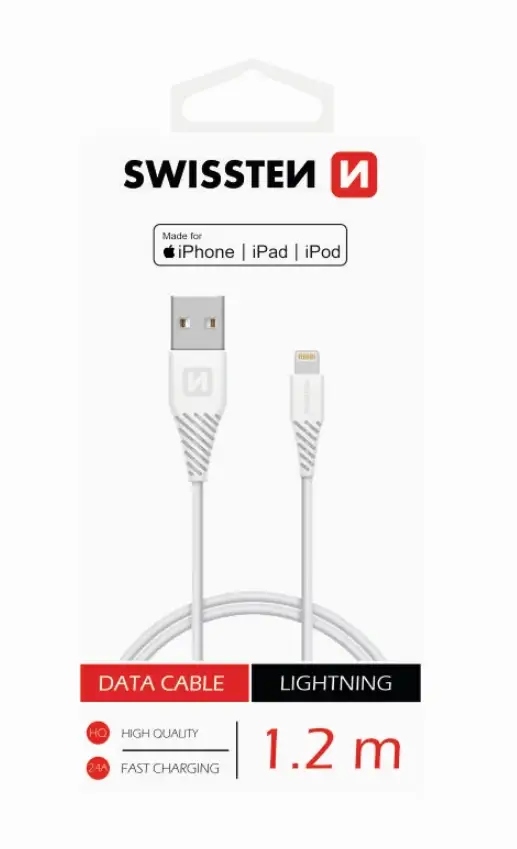 Kabel do transmisji danych TPE Swissten USB / LIGHTNING z certyfikatem MFI, o długości 1,2 m. Pakowane w opakowanie detaliczne Swissten.