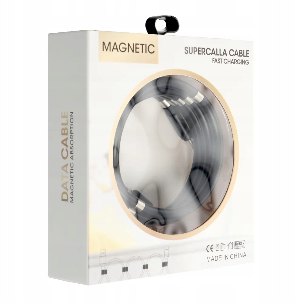 Kabel szybkoładujący z magnesami ułatwiającymi przechowywanie. Wspiera transfer danych pomiędzy urządzeniami.