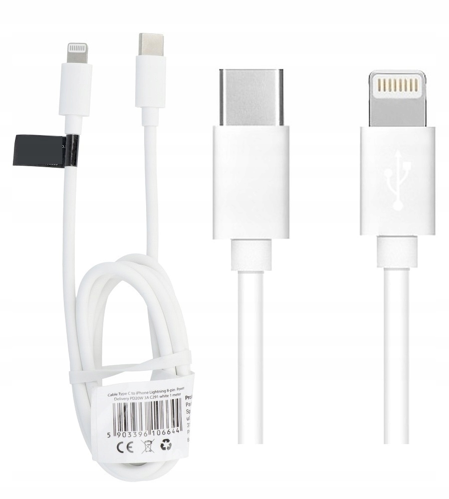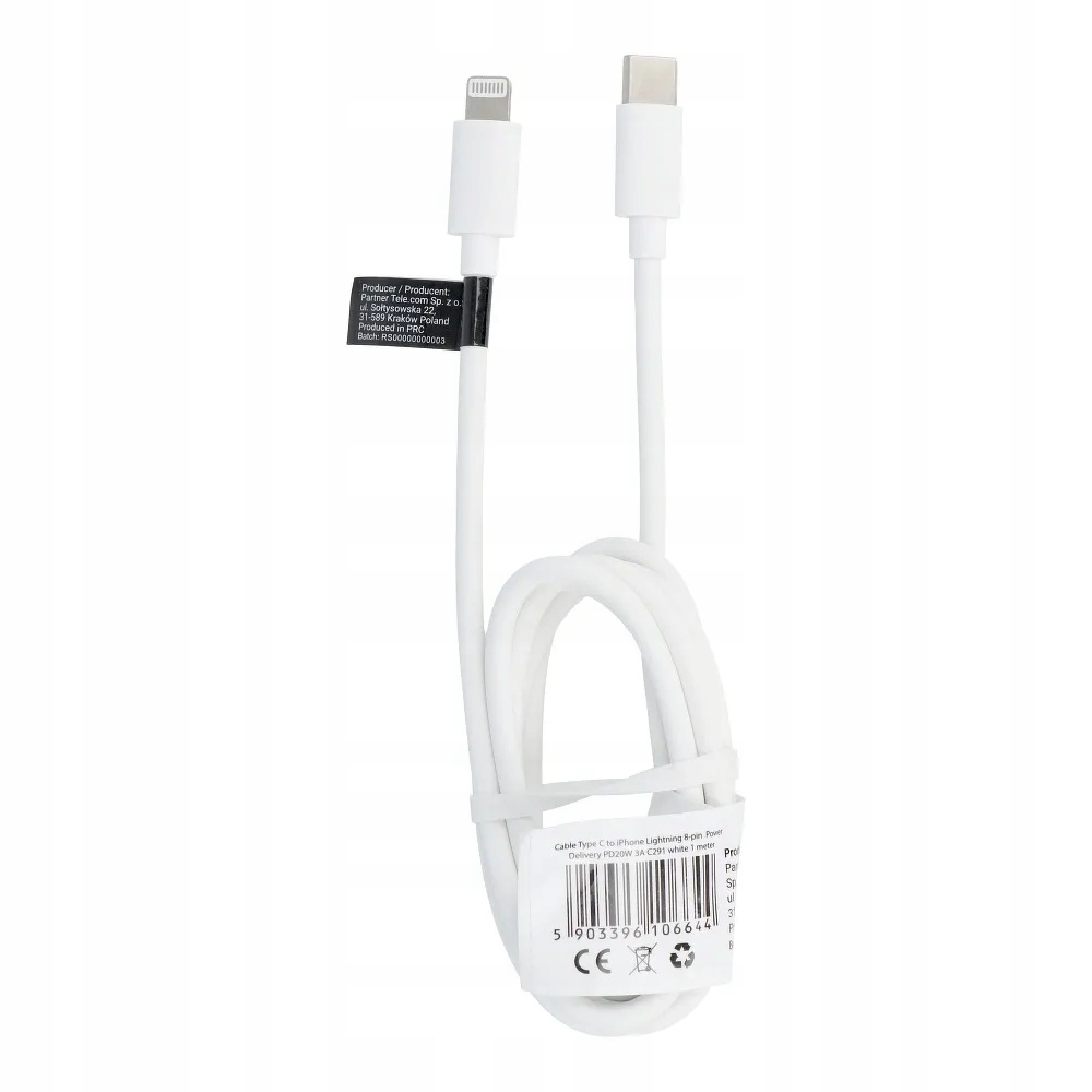 Kabel Typ C do Lightning PD 3A 20W C291 1 m biały