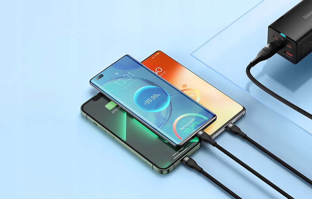 Kabel Baseus został wyposażony w 3 porty wyjściowe i podwójny port wejściowy, dzięki czemu naładujesz 3 urządzenia jednocześnie i zaoszczędzisz czas. Obsługuje też szybkie ładowanie 100 W. Wyróżnia się szeroką kompatybilnością i solidnym wykonaniem.