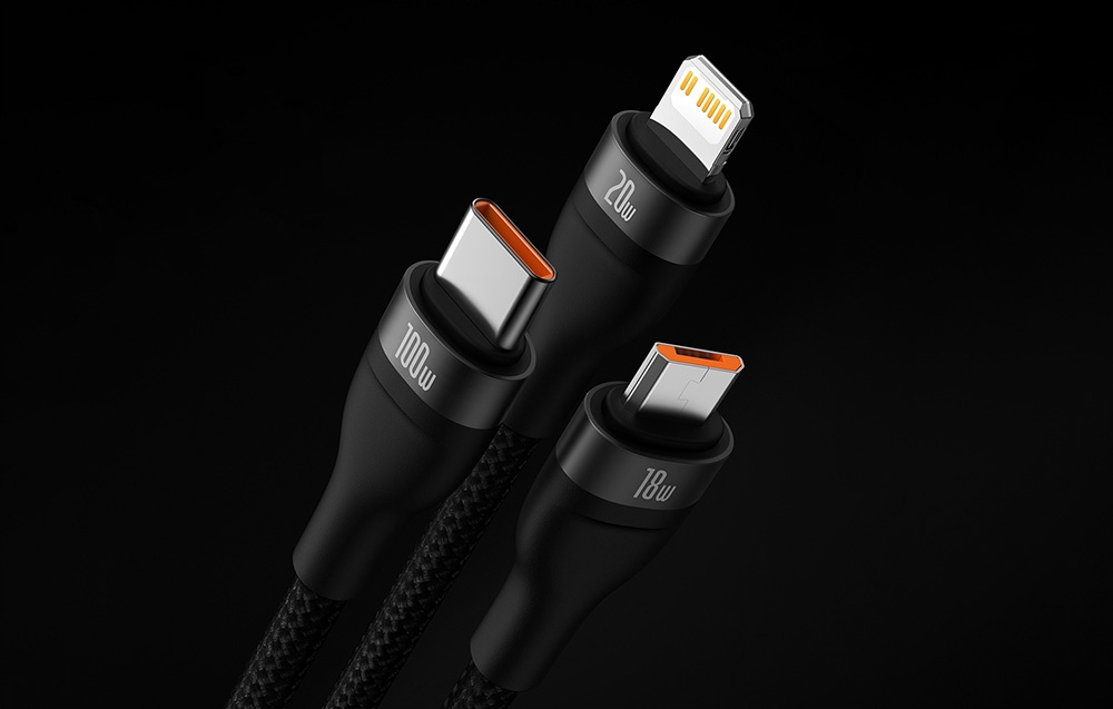 Kabel USB 3w1 Baseus Flash Series 2, USB-C + micro USB + Lightning, 100W, 1.2m