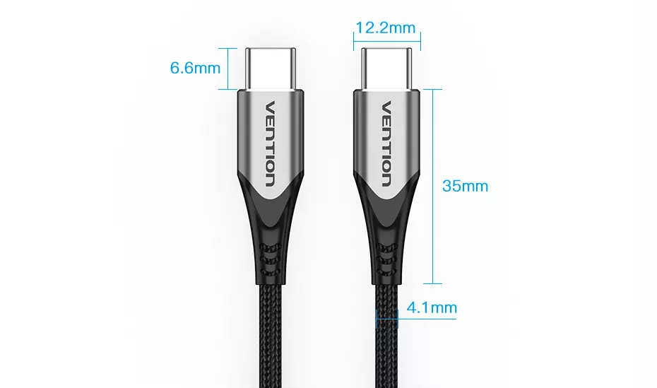 Marka Vention Model TAEHDKolorSrebrnyInterfejs USB-C do USB-C Pozłacana powłoka Tak Prędkość przesyłu danych 480Mbps Długość1.5m