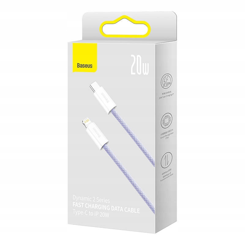 Producent Baseus Model CALD040305 Nazwa Dynamic 2 Series Fast Charging Data Cable Type-C to iP 20W Materiał ABS Kolor Fioletowy Moc ładowania PD 20W Prędkość transmisji 480 Mbps Długość 2 m