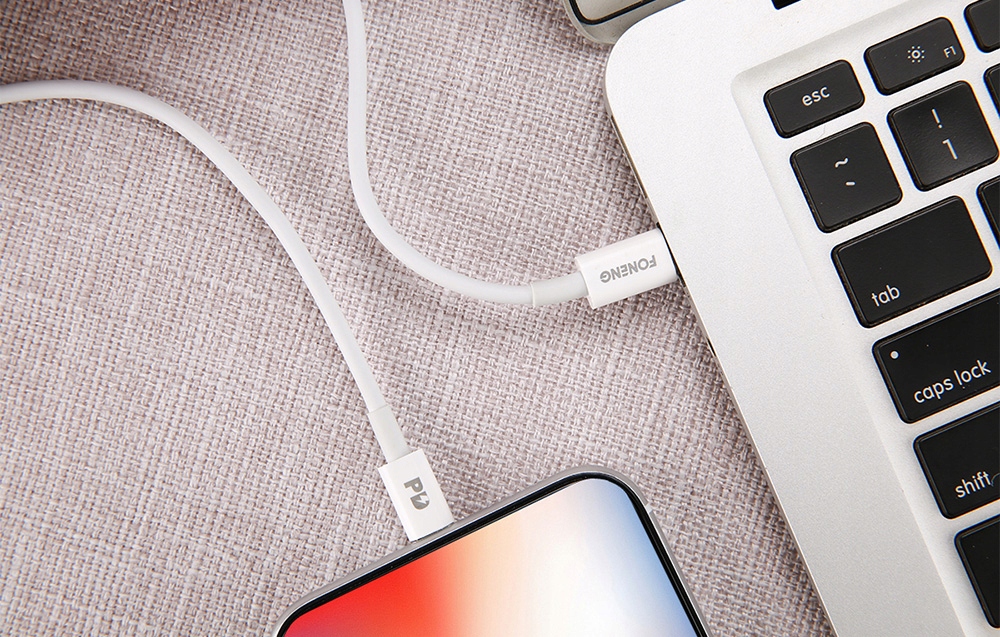 Kabel USB-C/Lightning marki Foneng obsługuje protokół szybkiego ładowania PD20W i wyróżnia się natężeniem sięgającym 3 A, dzięki czemu błyskawicznie odnawia energię kompatybilnego urządzenia. 30 minut wystarczy, aby poziom naładowania akumulatora osiągnął 50%. Produkt wykonano z wytrzymałego materiału TPE, a długość przewodu wynosi 1 m.