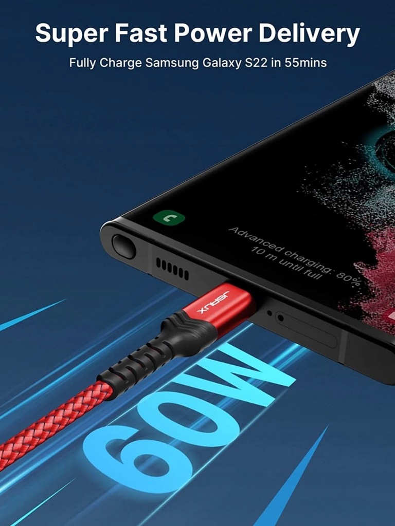 - 【Uwaga przed zakupem】 – ten kabel USB-C na USB-C, co oznacza, że ma tę samą wtyczkę USB C na obu końcach, należy pamiętać, że nie jest to kabel USB-C na USB-A. Poza tym do ładowania urządzenia może być potrzebna ładowarka ścienna USB C.