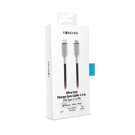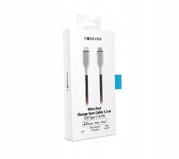Kabel Forever Typ-C + lightning 2,4A 1,5m czarny
