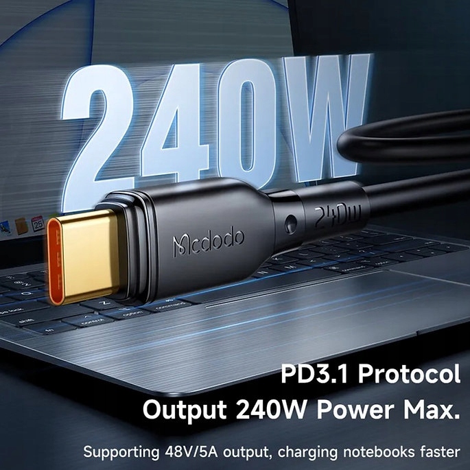 Kabel Mcdodo CA-3311, dzięki swojej imponującej mocy 240 W to doskonałe narzędzie do szybkiego ładowania Twojego urządzenia.
