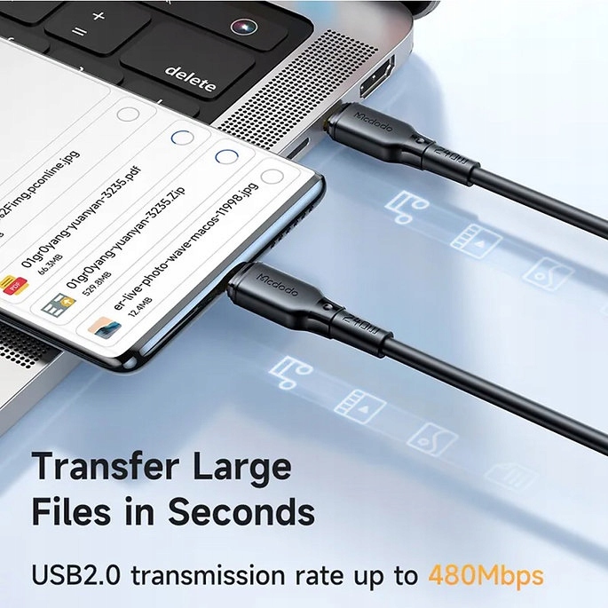 Kabel Mcdodo CA-3311 nie tylko szybko ładuje Twoje urządzenia, ale również pozwala na błyskawiczny transfer danych na poziomie 480 Mbps, dzięki czemu jest w stanie przesyłać duże pliki w ciągu zaledwie kilku sekund.
