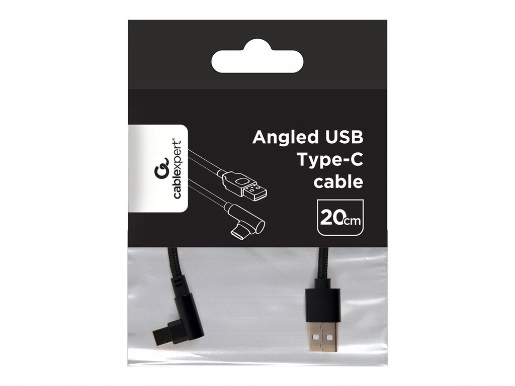 Kabel USB Type-C kątowy 0,2m Gembird czarny do ładowania i transferu danych