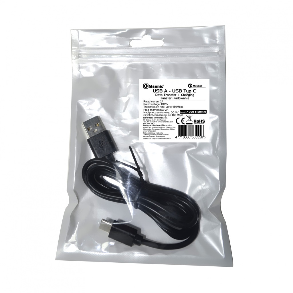 Kabel Msonic MLU536 o długości 1m umożliwia ładowanie oraz transfer danych do telefonów z interfejsem USB-C.