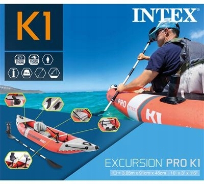 Kajak ZESTAW Excursion PRO K1 1os. POMPKA WIOSŁA TORBA Intex MODEL 2025