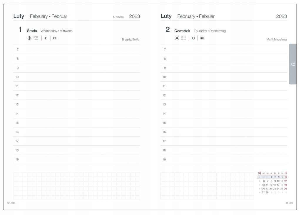 - układ DZIENNY (każdy dzień na osobnej stronie)