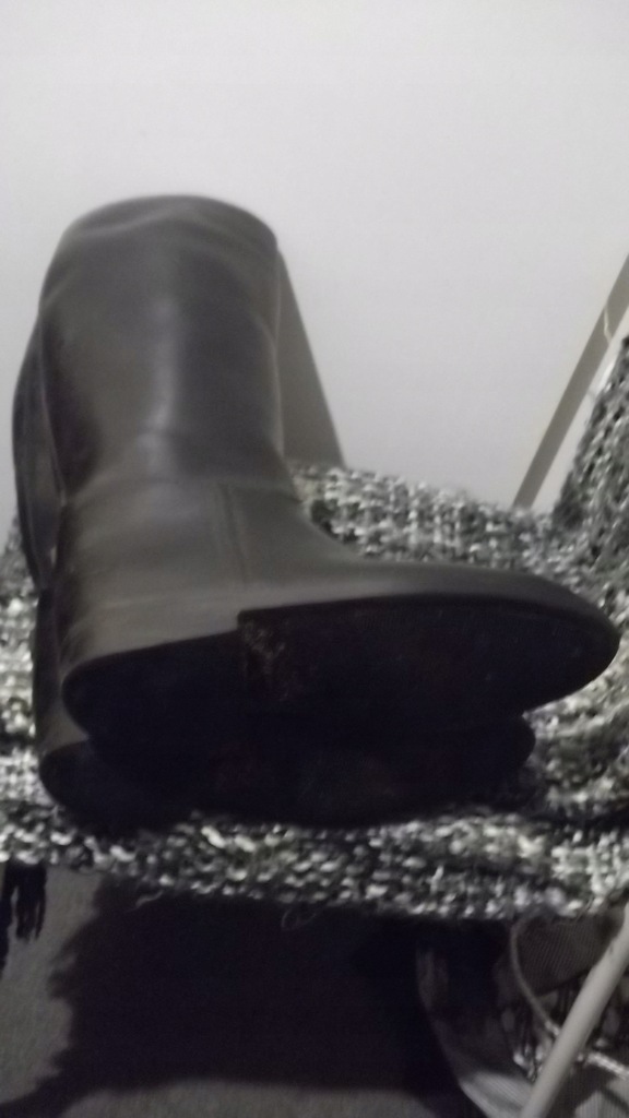 Kalosze są używane, ich stan oceniam na dobry+. Są lekko przykurzone, mają troszkę startą podeszwę. Są delikatnie ocieplane od środka podszewką.