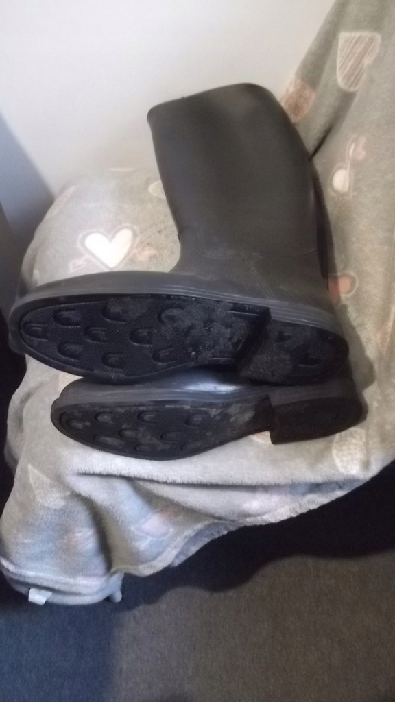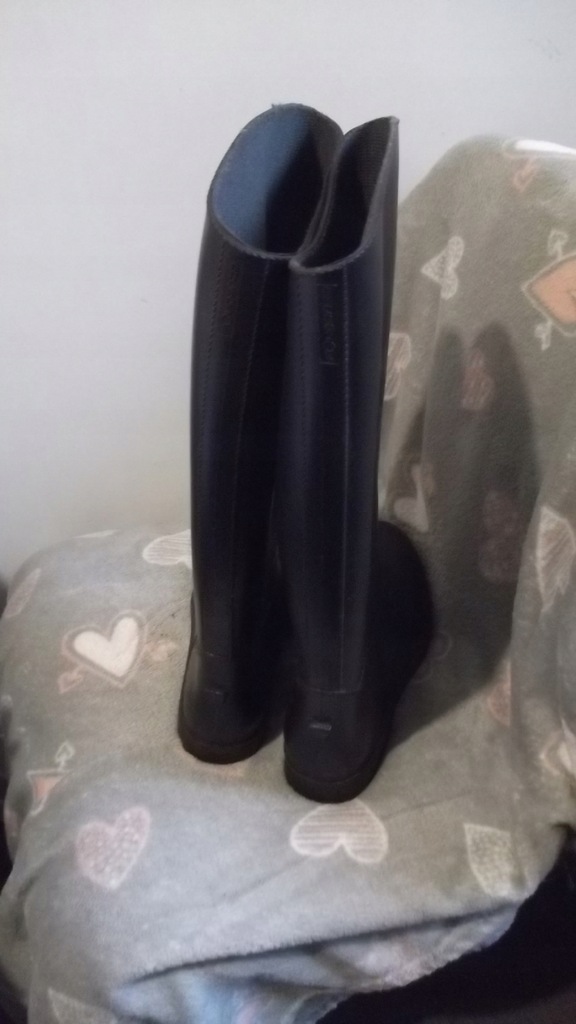 Kalosze są niewiele używane, ich stan oceniam na bardzo dobry. Są lekko przykurzone. Typowo jeździeckie kalosze.